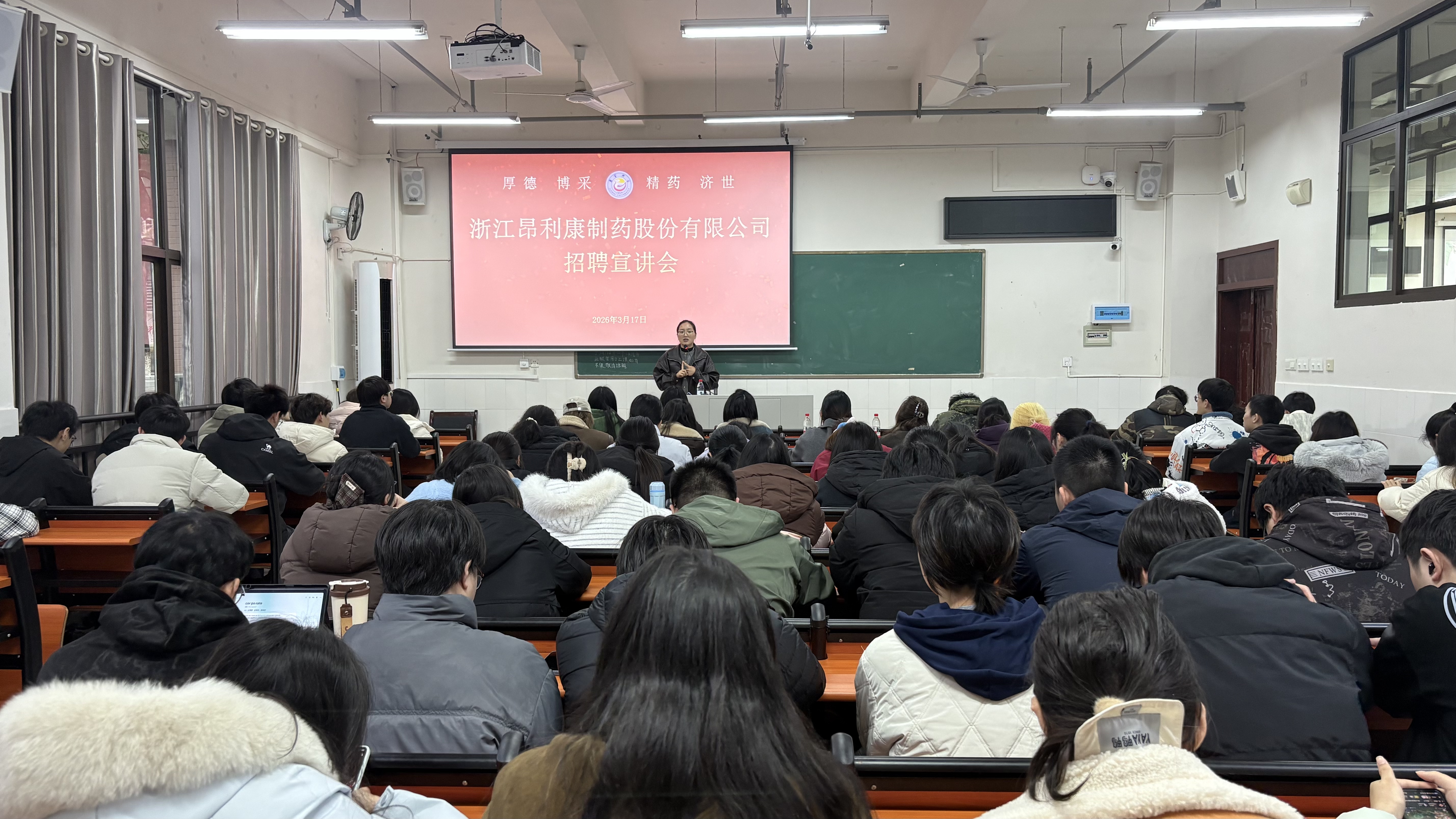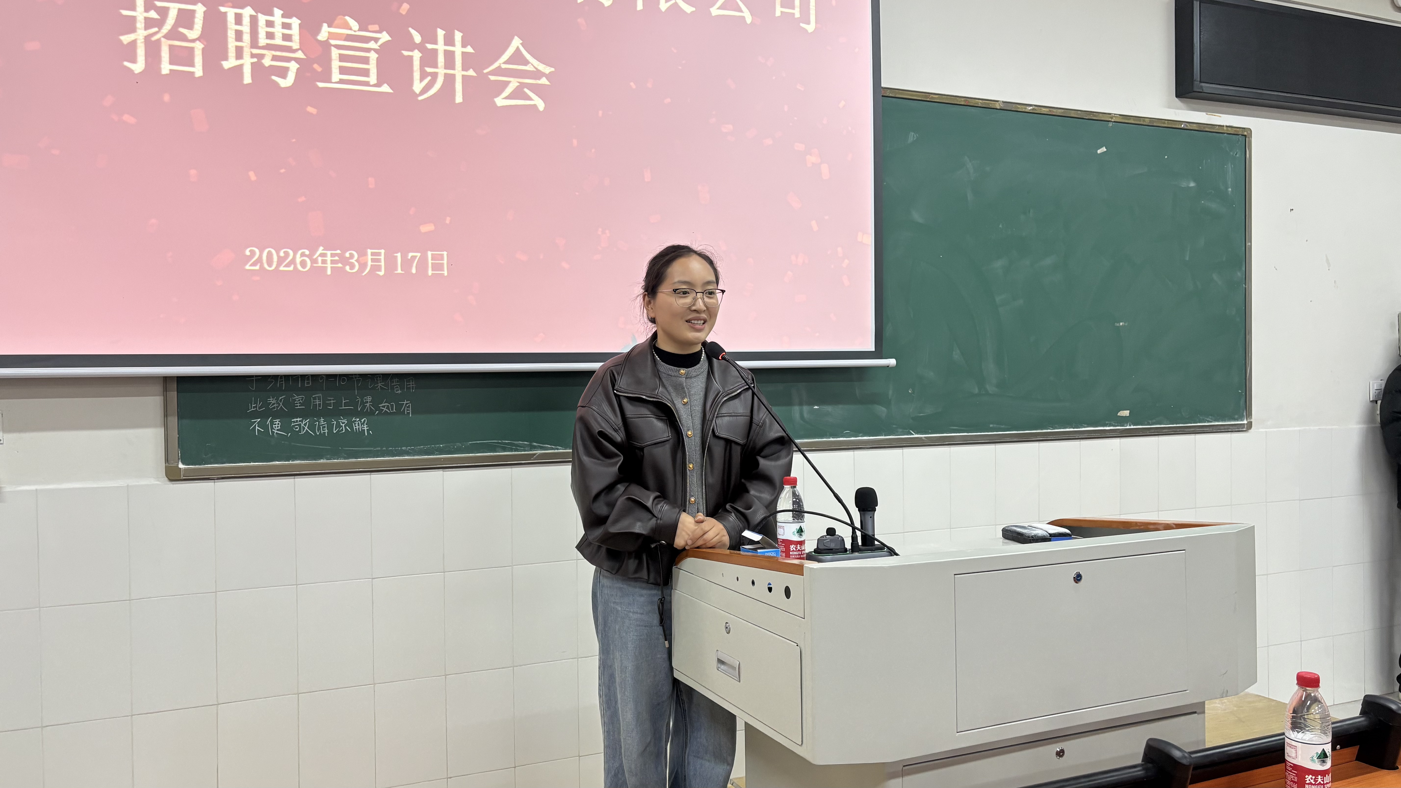 本网讯(通讯员 黄小格 桂可欣 何斐然 王芝) 3月17日下午,浙江昂利康制药股份有限公司专场招聘宣讲会在吉首大学大田湾校区第二教学楼2306教室举行。公司负责人李梦迪受邀主讲,百余名药学类本科生参会。